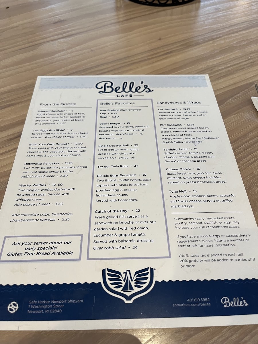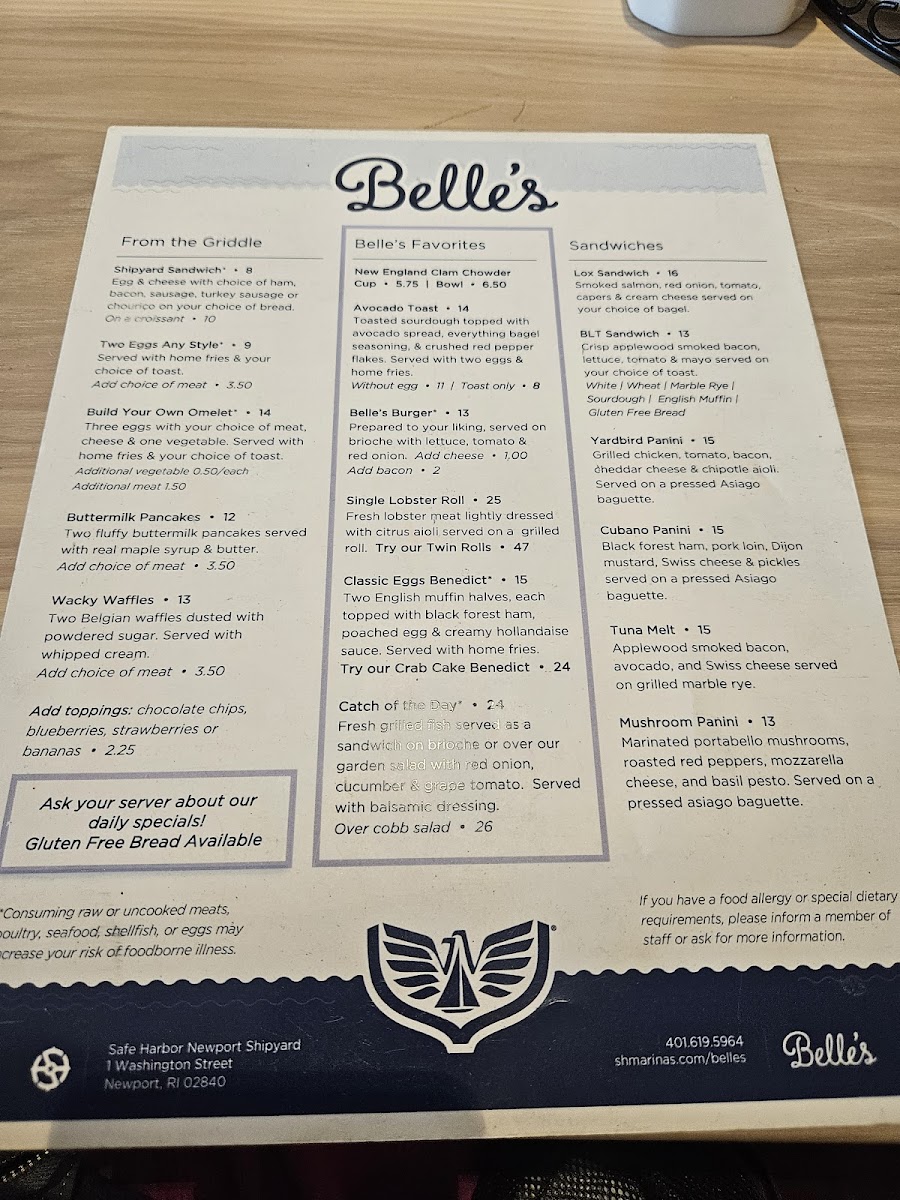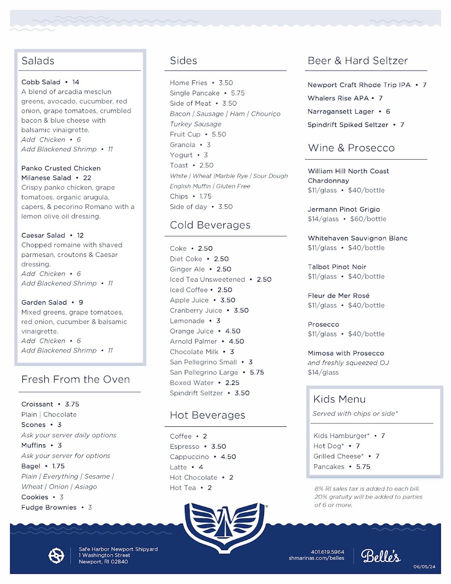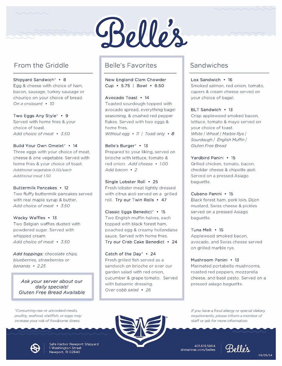 Welcome to Belle's, a culinary gem perched along the scenic waterfront of Newport, RI. This delightful restaurant combines a chic ambiance with a menu that celebrates fresh, quality ingredients, making it the perfect spot for breakfast, brunch, or lunch. Whether you’re basking in the morning sun on the lovely outdoor patio or enjoying the cozy indoor seating, the views of the marina create a picturesque backdrop for your dining experience.